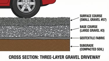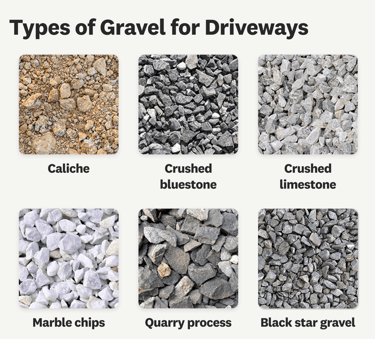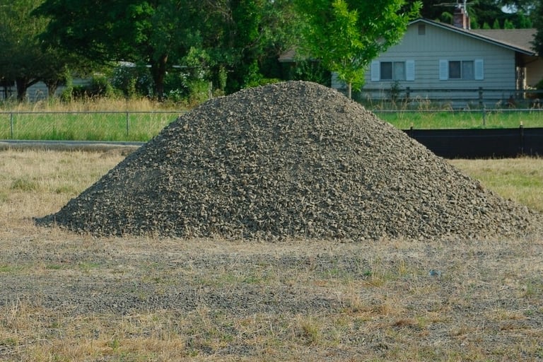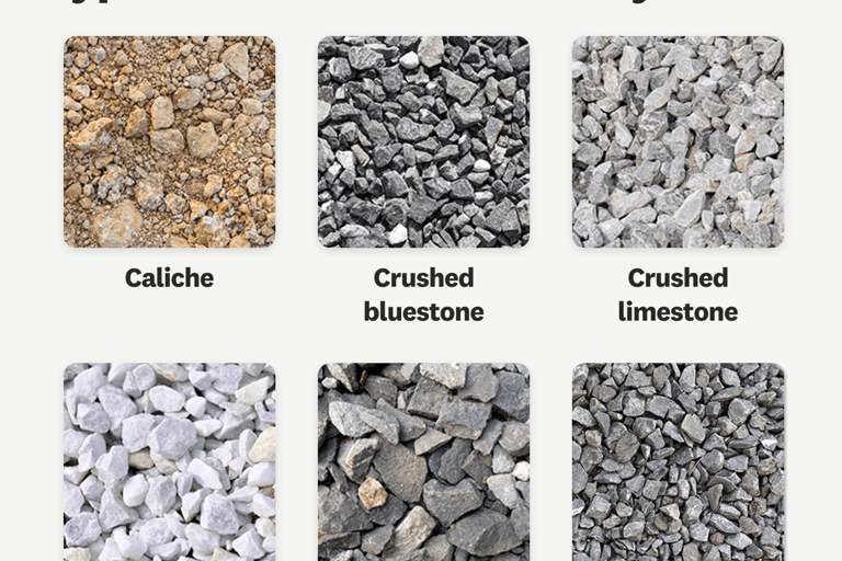 Gravel & Crushed Rock: Various sizes of rock used for driveways, landscaping, and drainage, including gravel, crushed stone, and riprap.